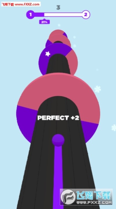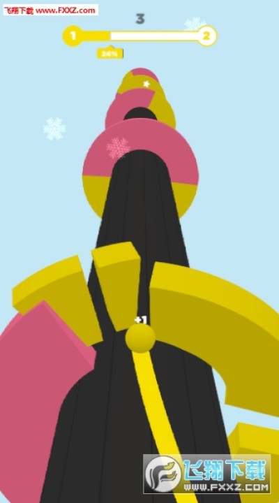 螺旋奔跑的奔跑撞击玩法非常的具有创意,玩家需要准确的转动彩色螺旋柱来帮助小球快速准确的通过障碍,注意撞击彩屏中间的小星星可以获得额外奖励,使用道具可以免撞圆柱螺旋柱!