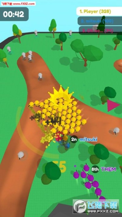 《Army.io官方版》是一款多人联机对转类休闲手游,玩家将率领自己的军队开始一场快节奏的对战,在地图场景中不断收集零散的士兵来壮大自己的兵团,歼灭其他玩家的兵团获取分数小心偷袭,在规定时间内获取最高的游戏分数!