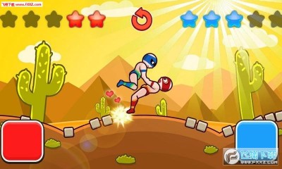 点击屏幕上的按钮,就可以蹬腿,此游戏有趣之处在于,两人还能手拉手在空中翻转,这时候找个机会就可以让对手撞到障碍的 Wrestle.Jump 作为一个主打跳跃的摔跤手,赶紧进来弄一个搞笑的摔跤特技吧~~~