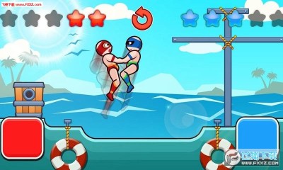 屏幕中有两个手拉手的小人,你只需要轻点屏幕,即可让小人欢快的跳动。由于两个小人的手是连在一起的,一个跳起,另外一个就会被拽到地上,谁的脸先着地,谁就输了。
