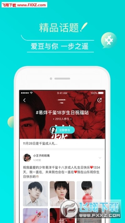 个性派对———来和小伙伴们一起为爱豆爆吹彩虹屁,商讨怎么为爱豆轮博打榜,一起寻找超有趣的爱豆生活吧!毕竟今天,我们也是为爱豆疯狂掉头的人呢!