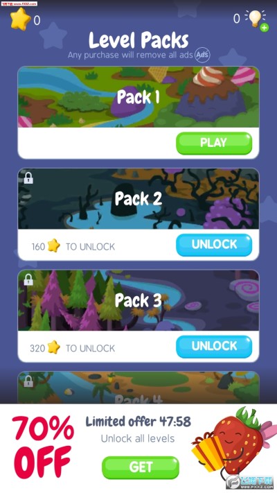 2、闯关游戏模式,手指滑动格子,把路线拼成一条线,冰淇淋、蛋糕就能回家了,不过每个关卡设置3星,用最少的步骤通关,可以收集3颗星,如果星星太少,可以反复挑战。