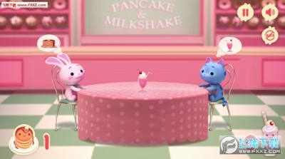 4、小兔子吃松饼,小猫喝奶昔