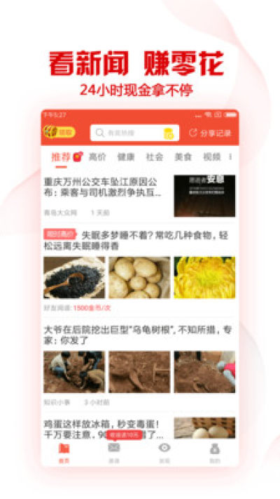 看新闻、读头条,领红包,丰厚现金一起赚。