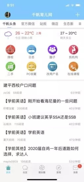 千帆育儿网app是上海地区K12教育一站式服务平台。主要为升学类和学习类内容。升学类包括幼升小、小升初、中考(裸考、自主招生、综合评价、名额分配等)和高考(保送、自招、综合评价裸考等)。学习类则包括了如何挑选机构、学前、小学、初中、高中期间如何进行学业规划(语数外理化等)。目前使用用户已经近30万!