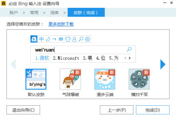 必应Bing输入法是新一代拼音输入法,必应Bing推出,轻盈流畅无广告无插件,采用微软亚洲研究院的创新技术,并且拥有创新中文引擎、海量词汇库、云端词库以及新词热词及时更新,为您提供超爽的中文输入体验,让您想到哪写到哪。