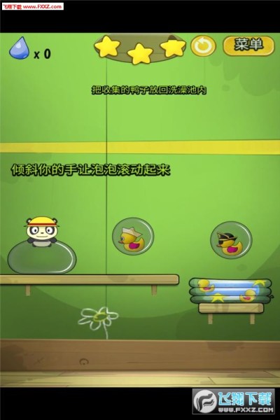 小熊猫顽皮爱洗澡手游是一款卡通风格的休闲益智类游戏,看似简单的玩法,其实具有挑战性,这款游戏的玩法包含了物理原理,过程中又有很多障碍物,小熊猫顽皮爱洗澡手游分为四个大主题,共包含了60个关卡。