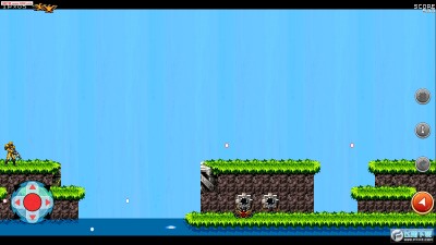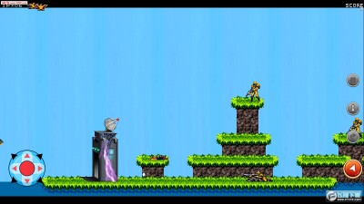 游戏中玩家需要控制一个特种兵进行冒险,可以使用不同的武器攻击敌人,注意躲避子弹和天空中的导弹。