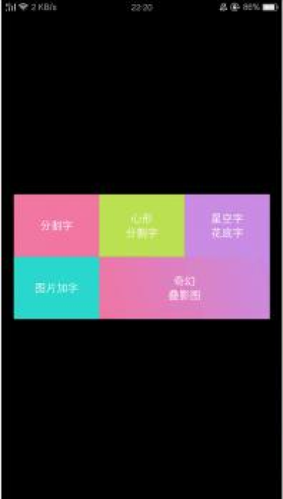 支持一键制作分割字、心形分割字、星空字花底字、奇幻谍影图等各种超多好看的图片,发说说、作品或者表白必备,无需繁琐等操作,一点即成,支持自定义字体、色彩等等,更多功能自行安装体验