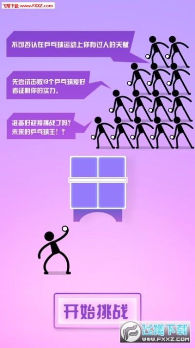 游戏将模拟乒乓球的玩法,玩家在这里需要操控自己的小角色,参与到乒乓球竞技中,利用你自己娴熟的乒乓球技术,战胜你的对手,获得胜利,仅仅利用左、右屏幕控制stickmen可爱和有趣。小心不要错过任何一个球,否则你会失败的比赛!