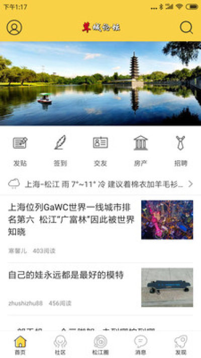 松江茸城论坛app是一款关于本地生活资讯的社区平台,为本地用户带来最新最全的资讯内容,同时软件基于互联网社交体系,用户可以发布信息或交友喔~需要的话就赶紧下载体验吧!