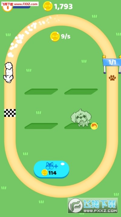 从小型狗狗开始,通过不断合成升级,将它们升级为更大更快的狗狗来赢得更多金币,努力打造属于自己的超级赛狗团!