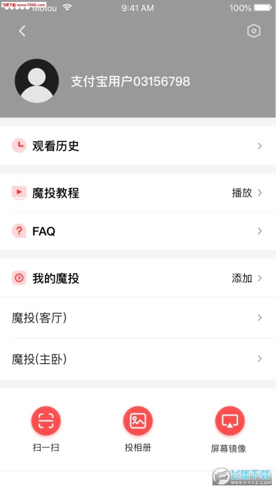使用该App,您可以为天猫魔投硬件设备配置网络。在天猫魔投连接到电视后,当您的手机和天猫魔投处于同一无限局域网时,可以轻松的通过手机与大屏互动,把手机App中的视频、音频等内容投放到电视中播放。
