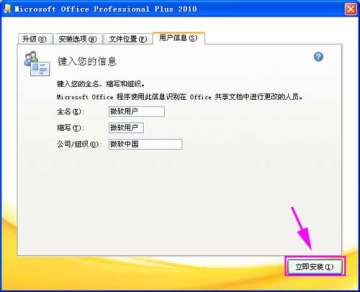 “用户信息”即是你的信息,默认有填写为微软用户等信息,可修改也可以不修改。开始安装的时候,只要点击右下角的“立即安装”按钮,如下图: