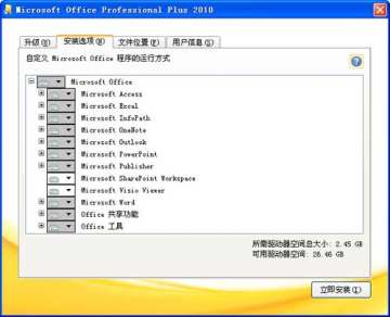 “安装选项”这个里面的东西即是OFFICE里面的所有的软件工具,一般安装的话里面的软件是全部一起安装的,PPT当然也在里面,我们没有必须去修改里面的软件,可以不动它:
