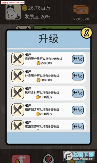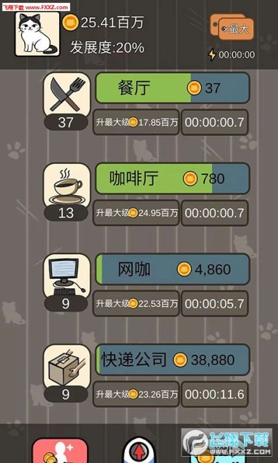 3、让自己的餐厅盈利,从而赚取更多猫币来不断的升级,拓展新的业务开展新公司。