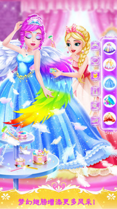 从护肤、美妆、美发,到美甲、换装、画翅膀……甜心公主们的舞会选择还真是丰富多彩,快快为她们打扮起来吧!
