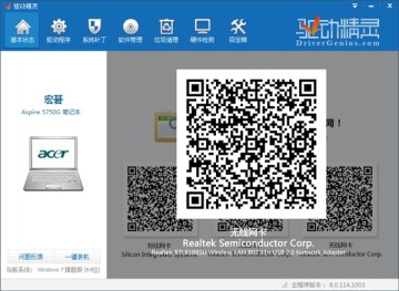 驱动精灵8.0新增二维码下载网卡驱动功能,在没有网络的情况下检测网卡型号;使用手机或平板扫描二维码就可以下载网卡驱动,下载完成后,将手机或平板连接到电脑,安装所下载的网卡驱动即可。