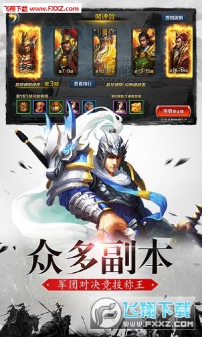 更有千人斩、沙场比武、闯联营、名将列传、军团战和跨服战等趣味横生的副本玩法,带您走进一个烽火狼烟的三国时代,做君主、招名将、统领三军,一统三国霸业!