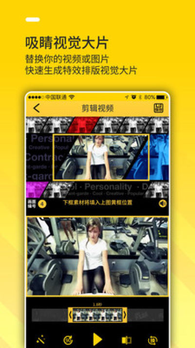 •拥有不同风格的智能化视频模板,模板的所有画面和文字均可修改,找个简约的模板改成旅游相册,或者挑个酷炫的模板改为促销视频,更有抖音、朋友圈、头图专用模板,千变万化等你来玩;