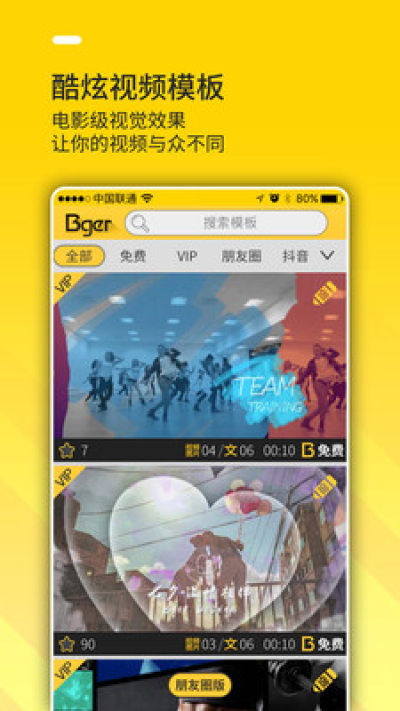Bger是目前效果超棒的视频编辑软件,上千个特效视频模板:每一个画面、每一段文字均可随意修改,无需专业知识和复杂操作,发挥你的创意便可改出你的专属视频!自己做导演,电影级宣传视频引爆抖音、朋友圈、微信群!