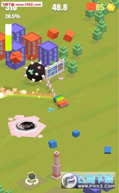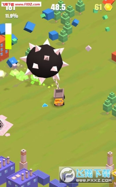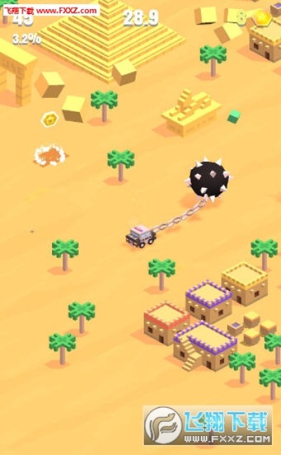 1辆小车 + 1条锁链 + 1个梿枷 = 大规模破坏,小车后连着一个巨型的梿枷,可以横扫一切!梿枷车手是一款色彩斑斓、快节奏的街机竞赛游戏。在不同区域间驾驶、移动和破坏。破坏的建筑物越多,得分就越高!
