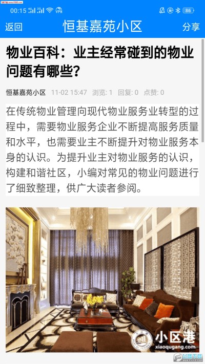 小区港app手机版是一款小区服务系统,有信息通知和电商两项服务,将物业、超市等所有的便民服务都加入其中,为玩家带来了一个全新的社区服务平台,在这里住户可以享受到最优的生活服务,每一项服务都很具特色,喜欢的朋友赶紧来试试吧。