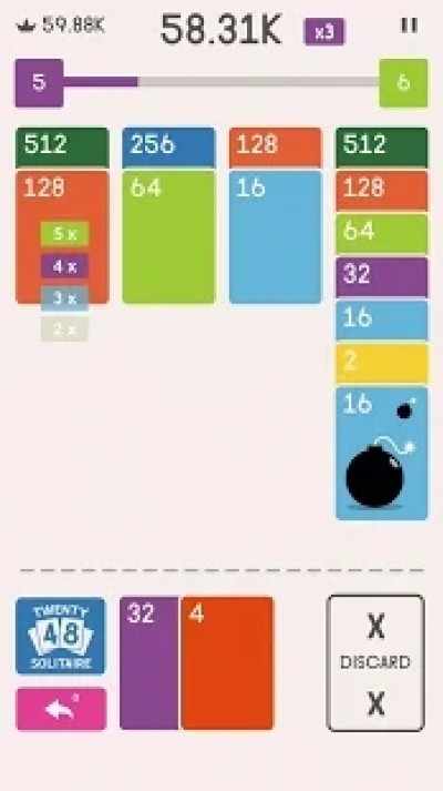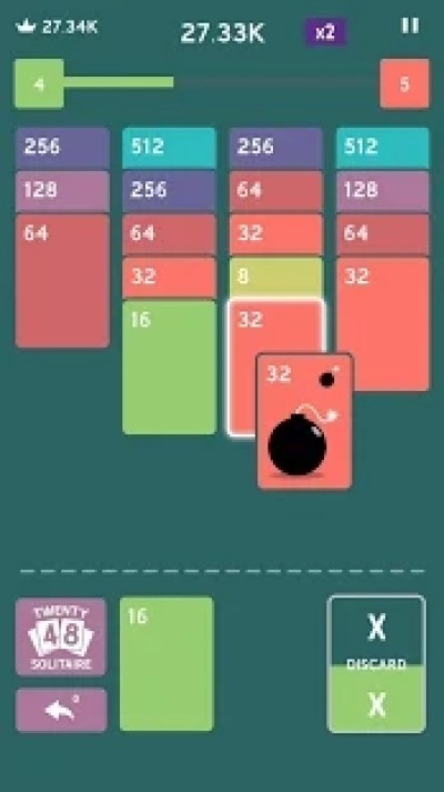 用您的卡片制作2-4-8-16-32-64-128-256-512-1024和2048,享受您的单人纸牌体验!