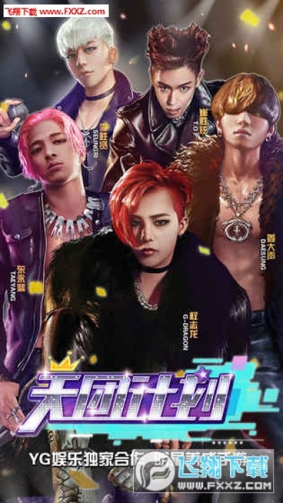 《天团计划》是一款明星养成手游,游戏获得韩国YG娱乐正版授权,收录了BIGBANG组合:队长G-DRAGON(权志龙)、T.O.P(崔胜铉)、TAEYANG(东永裴)、DAESUNG(姜大声)、SEUNGRI(李胜贤)五位成员及鸟叔Psy(朴载相)。