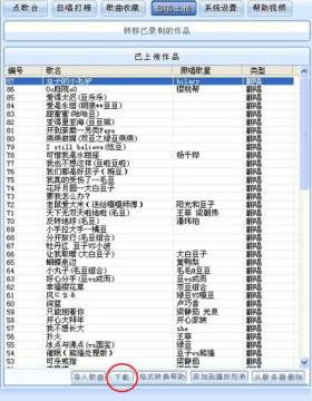 b. 点击“自唱上传”,选定“已上传作品”中需要下载的歌曲,点击列表下方的“下载”按钮,即可把歌曲下载到本地,目前提供的是Flv格式的下载,如下图: