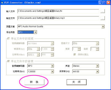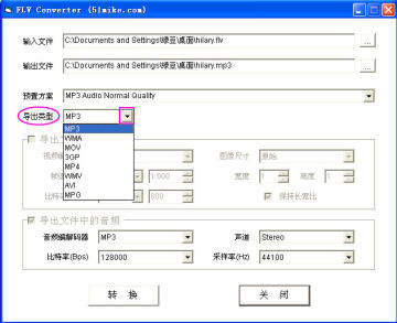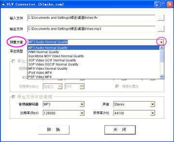 格式转换(把Flv歌曲转换为MP3、WMV等格式) (返回页首)