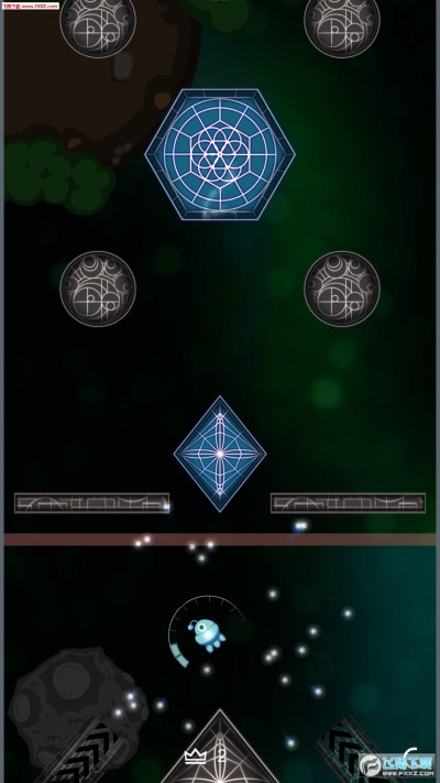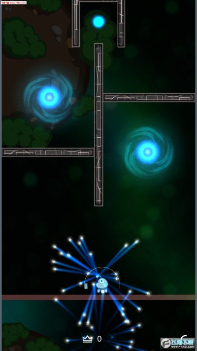 这是一款根据反射原理而设计的休闲闯关游戏,弹射到蓝色区域则可以停止移动,弹射到红色区域则会死亡。