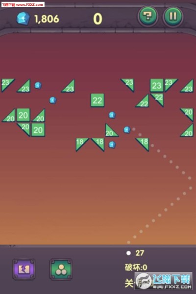 《天天玩弹球》是一款休闲益智的消除类游戏。游戏中,玩家需要将位于屏幕下方的圆球,沿瞄准线弹射到屏幕中间带有各种数字的方块上,让圆球不断的在多个方块、墙壁之间来回反弹,直到圆球反弹到地面。当圆球与方块每碰撞一次,方块上的数字就会减少一,直到方块的数字变为零时,该方块就会消失掉。