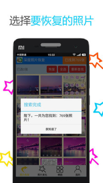 深度照片恢复软件是一个免费而且免root的照片恢复软件。帮你找回珍贵的照片,恢复成功率高,同时具备图片和照片美化等特色功能。