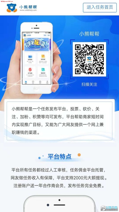 小熊帮帮app是一款任务悬赏平台,在这里用户发布你的任务,类似于投票、砍价等等,甚至还能够发布问卷调查等东西,这里的没一个任务都是明码标价,你也可以在这里赚点零花钱,感受不一样的游戏乐趣,喜欢的朋友赶紧来试试吧。