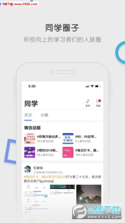 2、在线交流:通过APP随时随地与老师同学交流互动,研讨解惑。