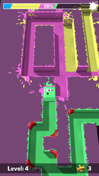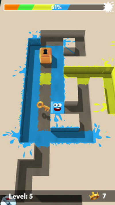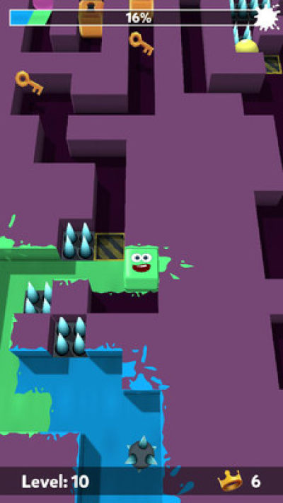 方块在迷宫去进行滑行,收集钥匙去进行闯关,将你的颜色涂到地上