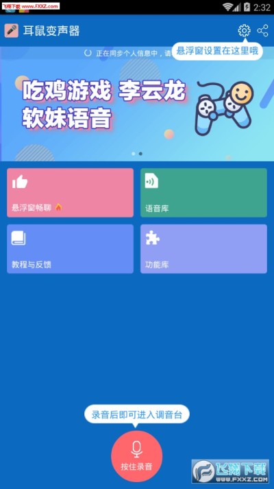 耳鼠变声器app是小编目前看到最新最全的语音包软件了,游戏一键变声,该变声器是一款集变声、语音包、录音和音效播放于身的语音包变声软件,内含精品语音包,素材,需要的朋友赶紧下载吧。