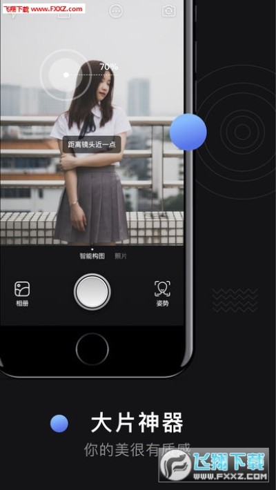 自动识别人脸,会在屏幕的某个位置出现提示最佳构图的目标框,只需要移动相机到目标框,就会出现“赞”的符号,这时按下快门,完美构图!