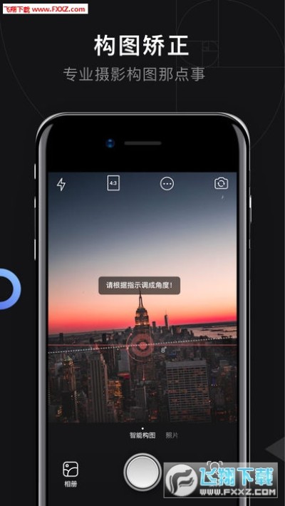 取景框中会自动出现水平辅助线,调整相机的水平位置与辅助线重合拍出完美照片