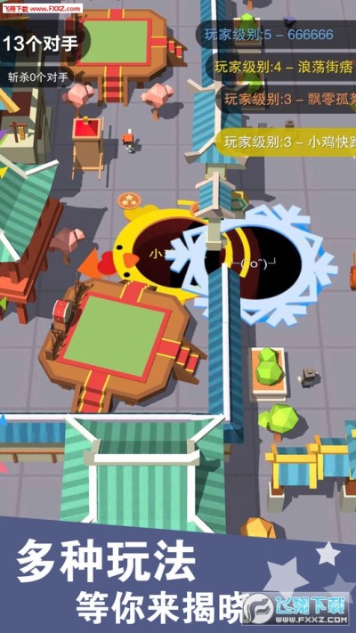 happy holeio最新版》是一款吞噬玩法的多人休闲竞技类游戏,玩家需要控制自己的黑洞在各个场景中内吞噬,将比自己小的所有物体和其他玩家吞噬来强大自己,用更大的黑洞吸取更多的武器,在规定时间内获得更高的分数!
