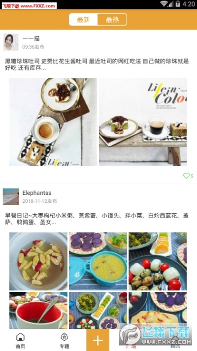 【广场】主要是吃货们发表动态的地方,晒晒美食,晒晒心情,是吃货的聚集地。