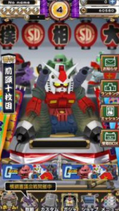 这是一款非常有趣的相扑休闲游戏,将会分为头、身、右手、左手、脚等5 个部分的部件组装自己的SD 高达,成为高达相扑界的「大横纲」为目标进发!
