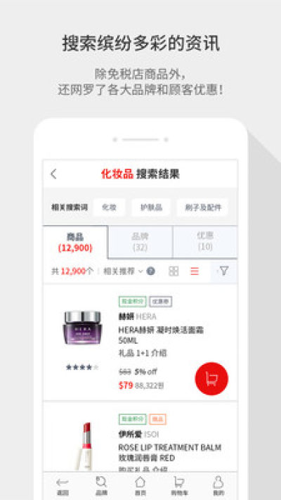 3. 搜索缤纷资讯:除免税店商品外,还能一网打尽各大品牌和顾客优惠的缤纷资讯!