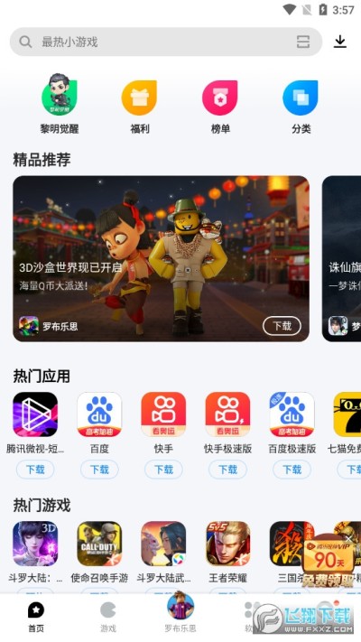 活动专区中下载游戏,海量Q币送不停