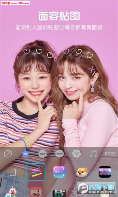 各种有趣动态贴纸,智能识别人脸,帮你一键贴准脸部表情,长按拍照键还可以录制短视频,参与拍照挑战,一键分享朋友圈、微博,与全球用户一起嗨!
