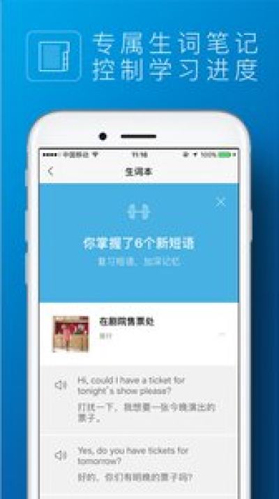 【个人生词本】每节课完成后,系统将为你创建一个生词本,以便控制学习进度。