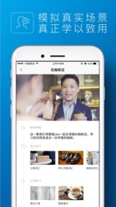 【互动练习英语】每节课都包含了实用的“小型”互动练习。使用者可以与视频或音频中的模拟人物一同练习英语,系统通过自动语音识别技术(ASR)了解你的语言习惯,为你的口语打分。