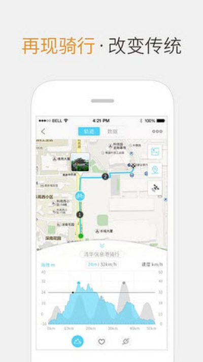 基于GPS定位,精确记录骑行转弯,实时监测时速、里程、踏频等运动数据。骑行结束,最高速度、卡路里、爬升里程、累计爬升、平均踏频等更多数据可供你充分了解骑行过程。与好友分享你精彩的骑行;