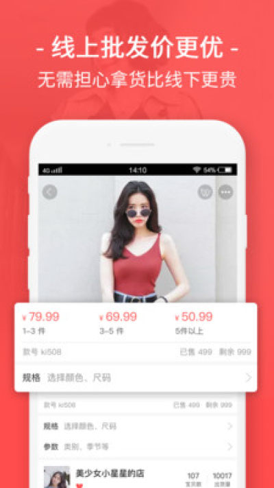 不用担心线上价格高于线下,档口时不时发放优惠券,批发件数不受限制,降低你的囤货压力,让货品批发更优惠,性价比更高;